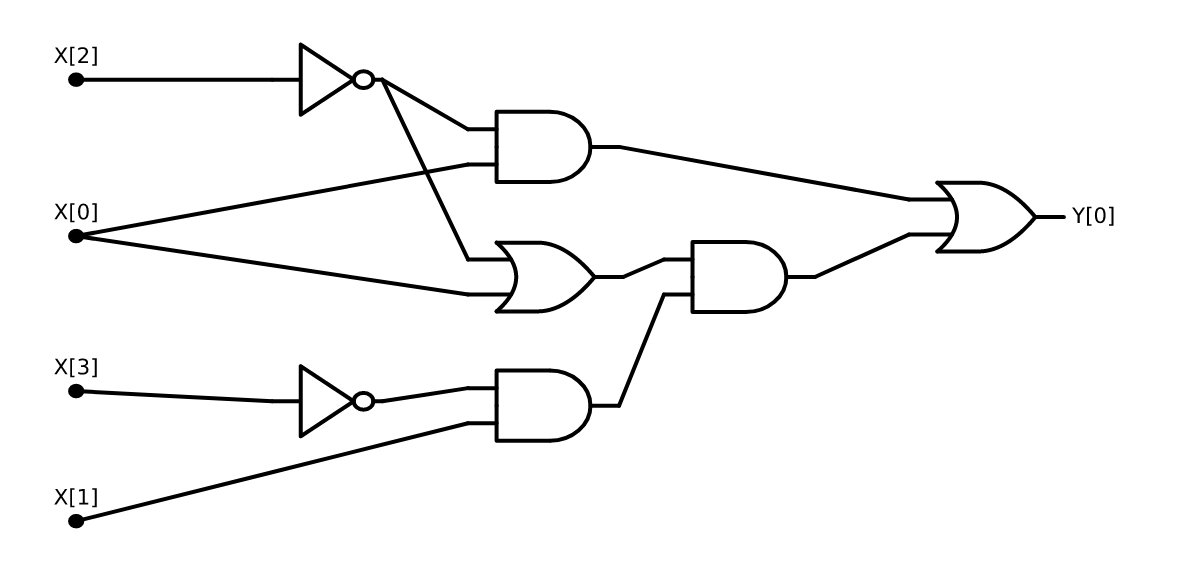 Recall that we can also write \(a \vee b\) for \(\ensuremath{\mathit{OR}}(a,b)\) and \(a \wedge b\) for \(\ensuremath{\mathit{AND}}(a,b)\). With this notation, Equation 3.1 can also be written as